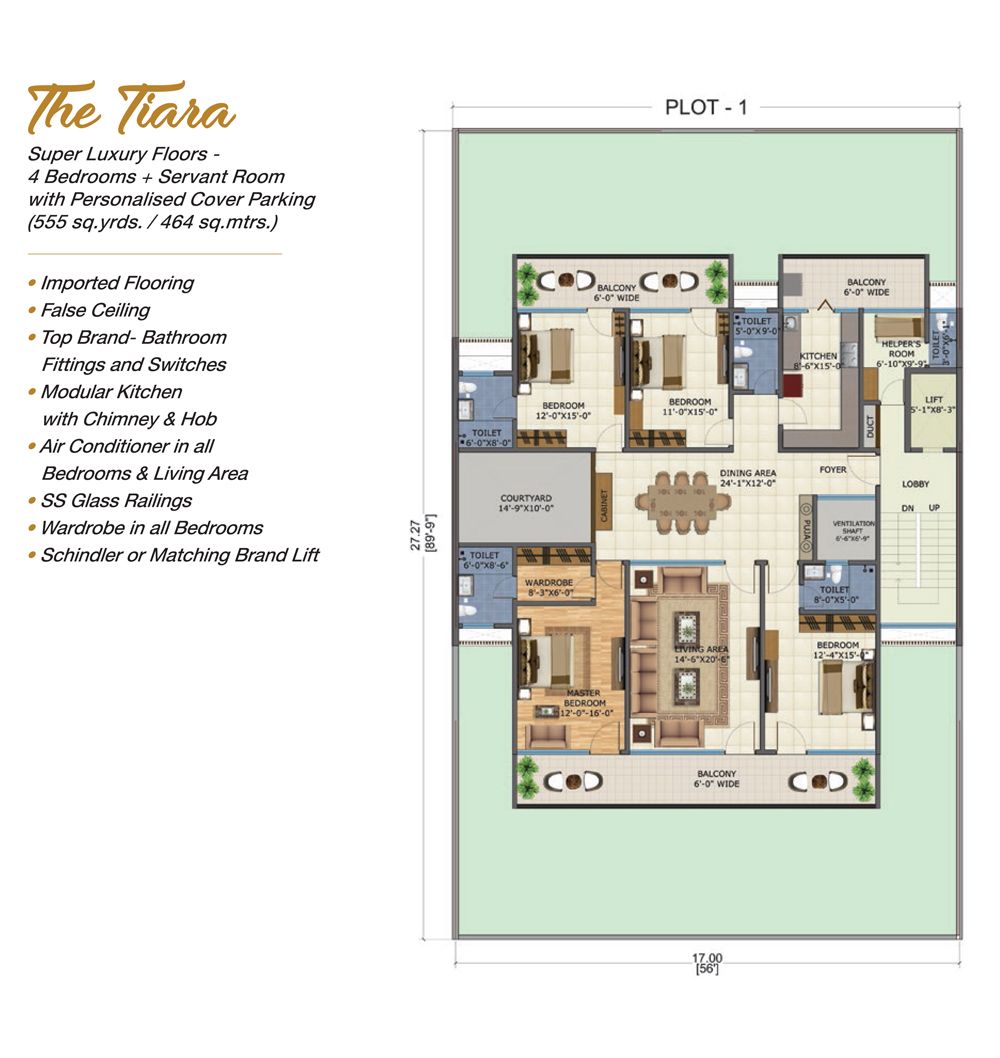 The project offers flexible plot sizes for custom home construction along with spacious floor layouts designed for